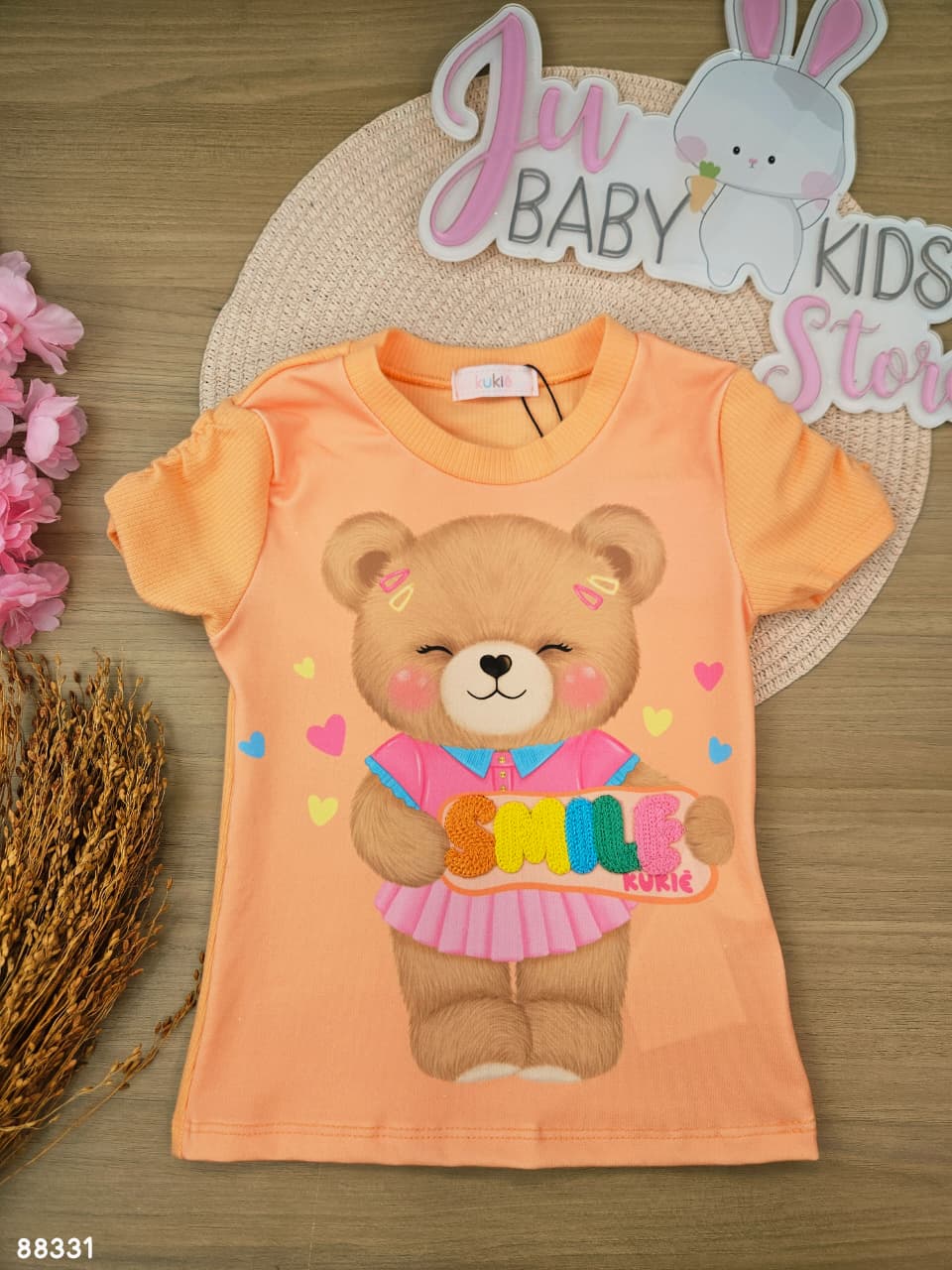 Blusa em Canelado Ursinho Kukiê Infantil Menina