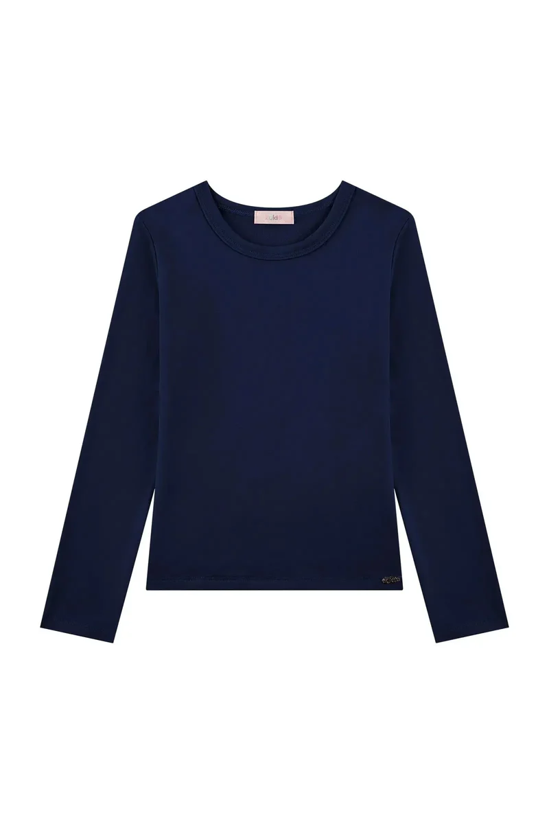 Blusa em Termoskin Peluciado Azul Marinho Kukiê Infantil Menina