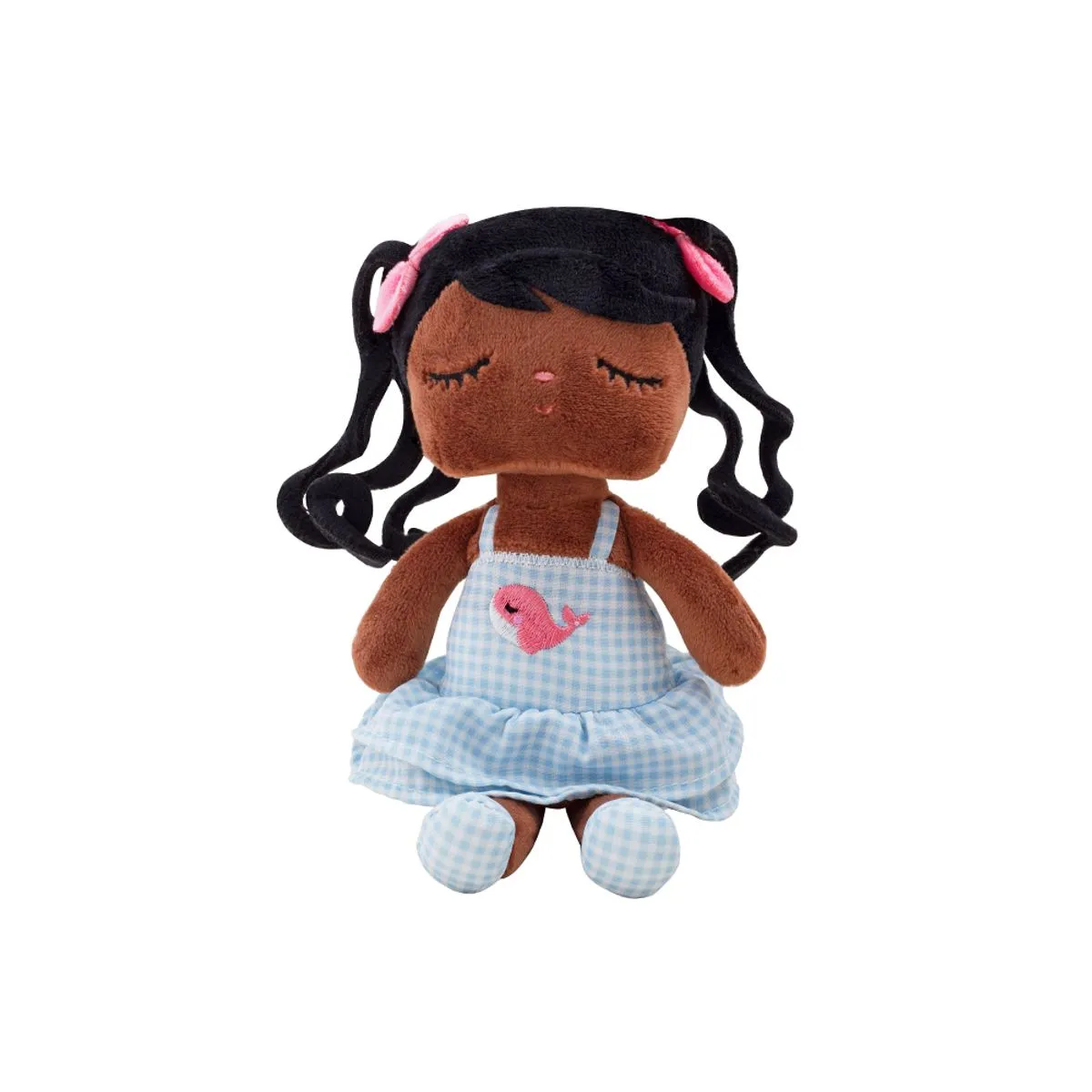 Chegou uma das bonecas mais pedidas: a Angela Cacheada! A Boneca Metoo Mini Angela Poppy foi desenvolvida exclusivamente para o Brasil e é indicada para crianças de todas as idades. Feita inteiramente em pelúcia, vem com roupinha de praia e lacinho em plush, e uma sapatilha super fofa que dá um charme todo especial! Uma excelente opção para decorar ambientes infantis e presentear crianças e bebês. Perfeita para dormir abraçadinha, os bebês adoram. E o melhor: são colecionáveis. Não deixe de conferir os outros designs. ATENÇÃO: Este produto é original Metoo. Possui etiqueta em português, selo antifraude e toda a segurança comprovada pelo INMETRO. ESPECIFICAÇÕES: - Recomendado para crianças de todas as idades a partir de 0 meses; - Este brinquedo não tem restrição de idade; - Toque aveludado e olhos fechados, pensado para acalmar os bebês. COMPOSIÇÃO: - 100% poliéster e enchimento 100% fibra de poliéster. MEDIDAS APROXIMADAS: - Cabeça e corpo: 14 cm. - Cabeça até o pé: 20 cm. LIMPEZA E MANUTENÇÃO: - Aconselhamos lavar à mão. Caso use a máquina de lavar, indicamos rotação leve e temperatura máxima de 30º; - Não limpar a seco; - Não usar a secadora. SOBRE A MARCA: A Metoo é uma marca chinesa, criada em 2004, com o intuito de adicionar um toque de felicidade à nossa vida. Combinando os designs mais fofos e os materiais mais confortáveis, a Metoo projeta, desenvolve, fabrica e comercializa brinquedos de pelúcia e acessórios para a casa de alta qualidade. A filial brasileira da Metoo desenvolve produtos exclusivos com todo o toque de sofisticação, primando pela qualidade e segurança dos nossos pequenos. As bonecas de pano são colecionáveis, indicadas desde RN, perfeitas para decorar ambientes infantis e presentear crianças e bebês. Uma mais linda que a outra, a marca possui também diversos acessórios, pelúcias e modelos de bonecos para meninos.