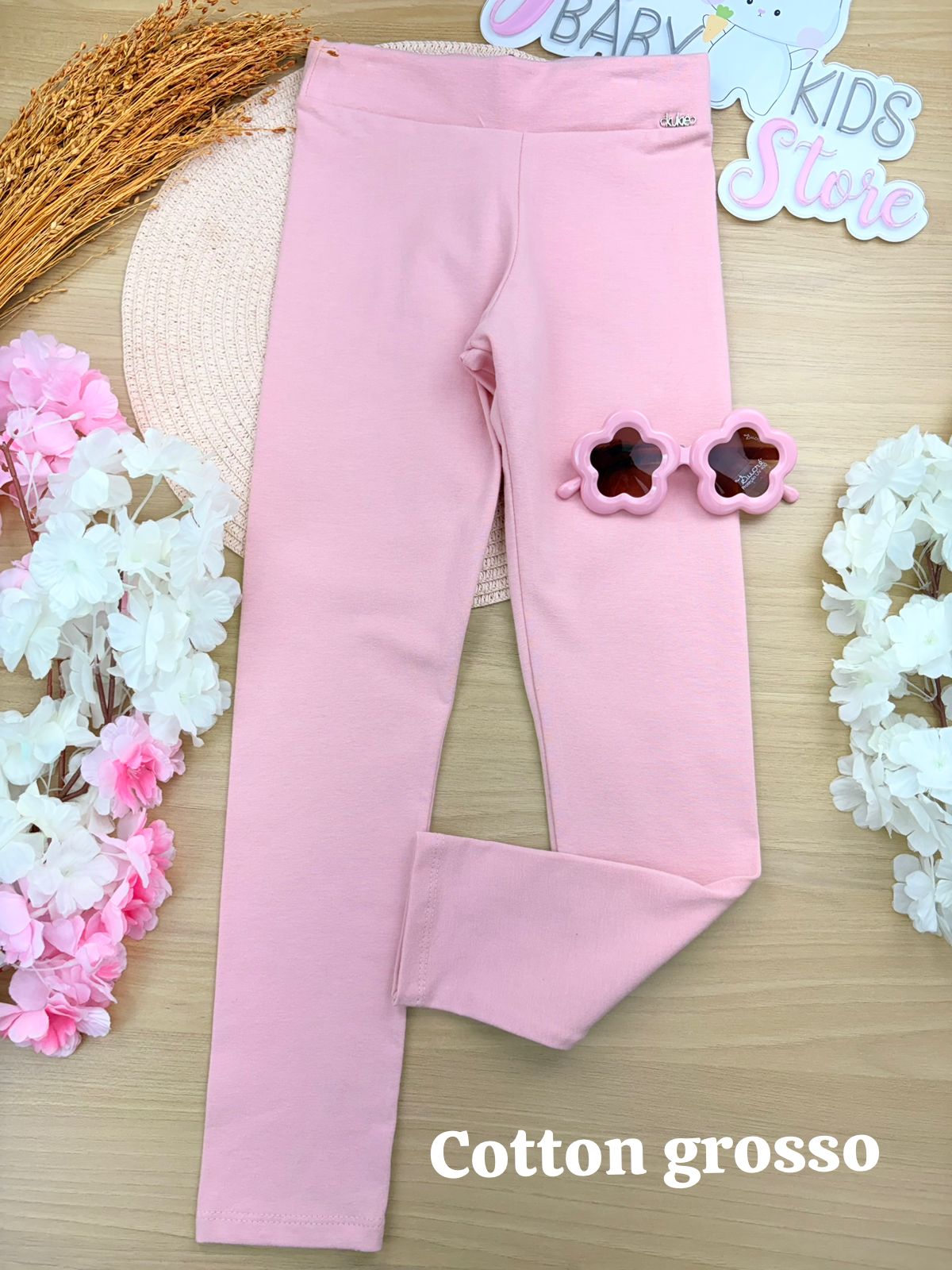 Calça Legging em Cotton Grosso Rosa Kukiê Infantil Menina