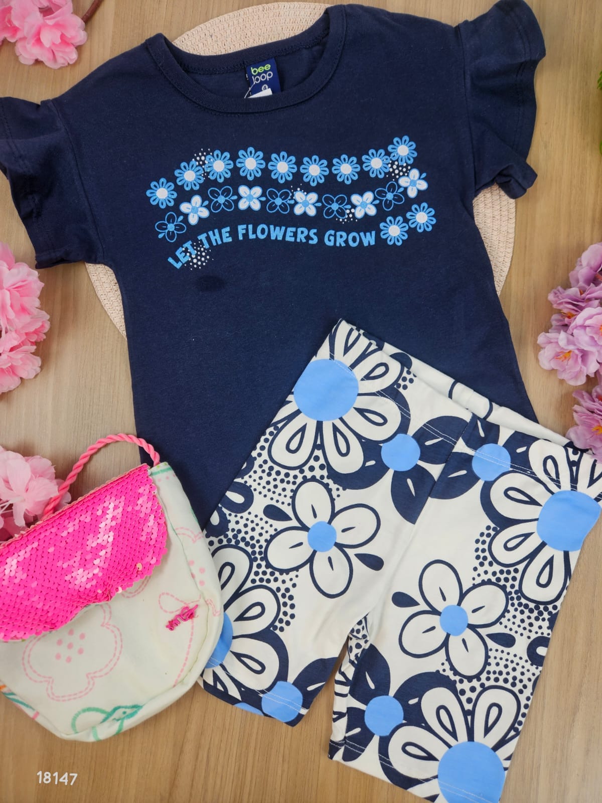 Conjunto Blusa Malha e Bermuda em Cotton Azul Escuro Bee Loop