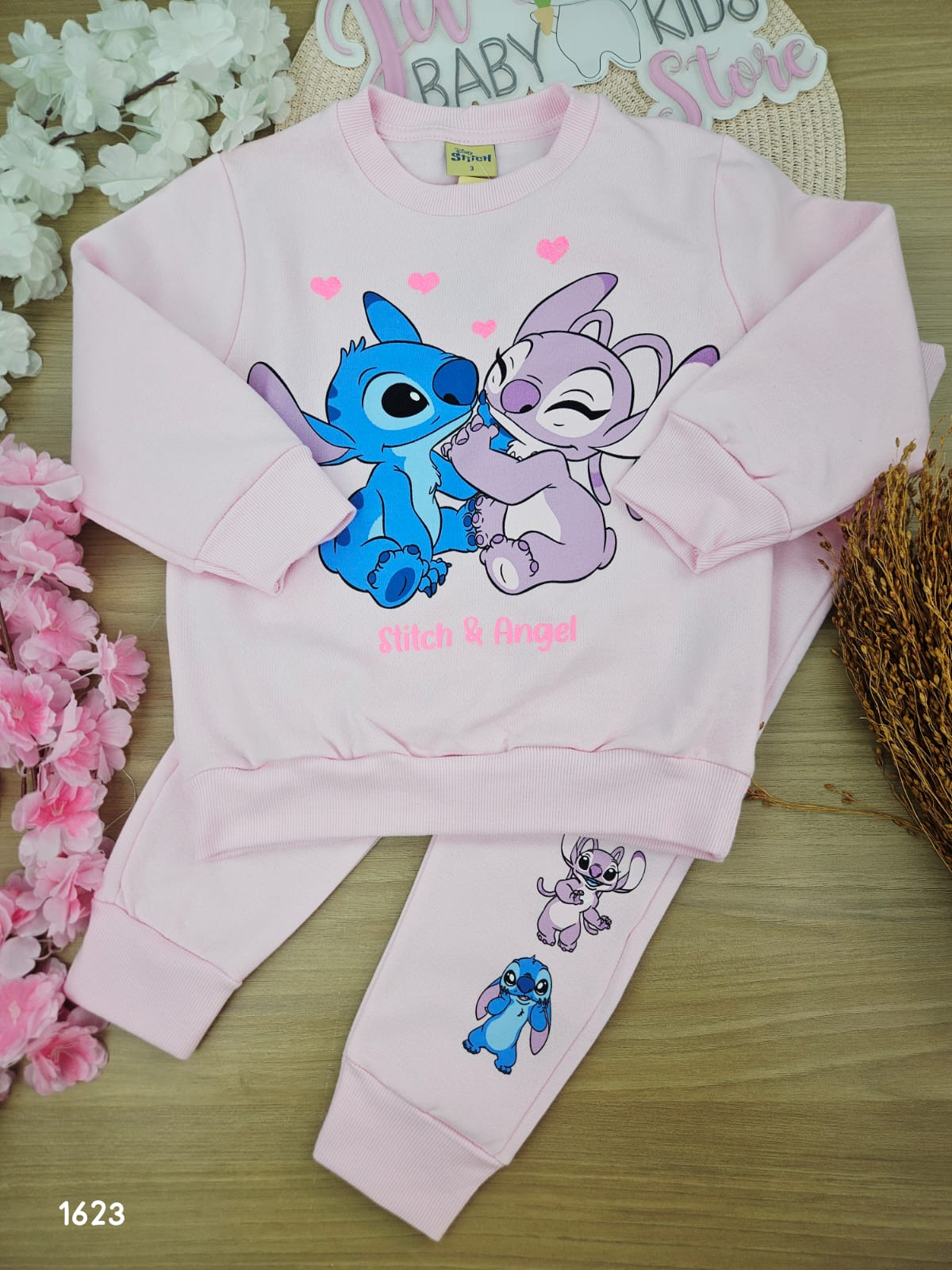 Conjunto Blusão e Calça Stitch Rosa Fakini