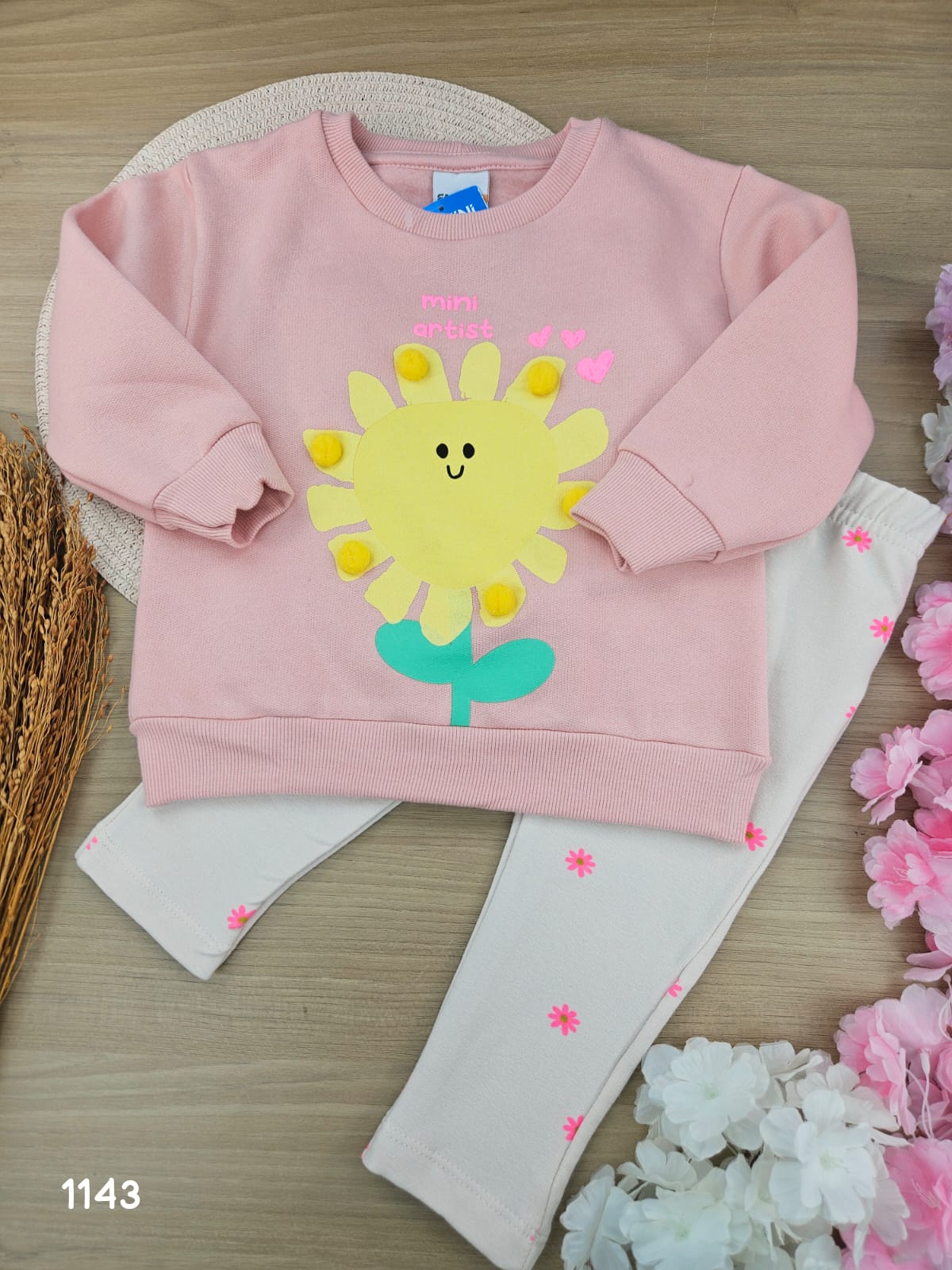 Conjunto blusao em malha 100%algodao e legging em malha 96%algodao 4%elastano feminino Fakini