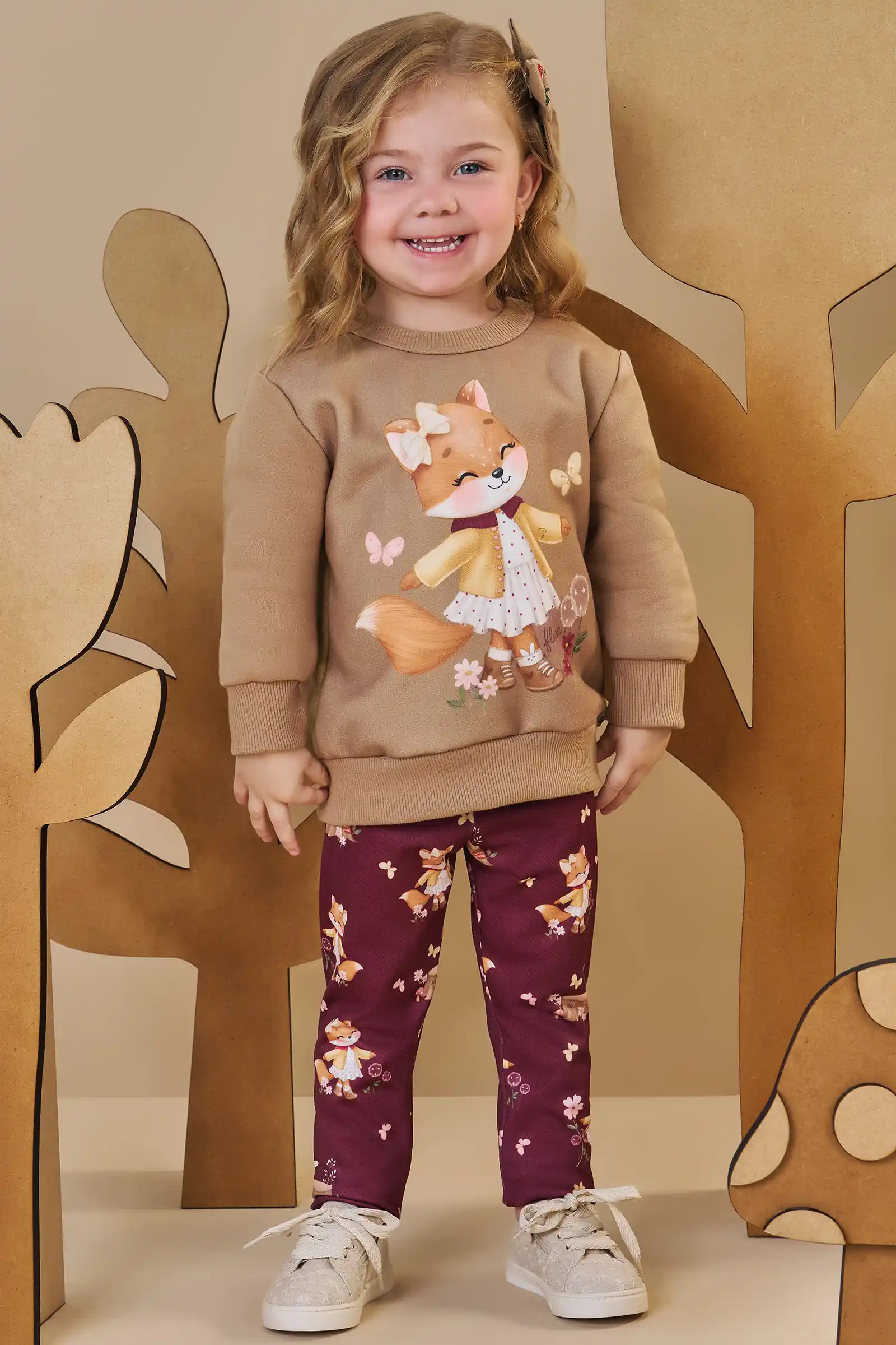 Conjunto de Blusão em Moletom com Pelúcia e Calça Legging em Termoskin Peluciado Infanti Bebê Menina