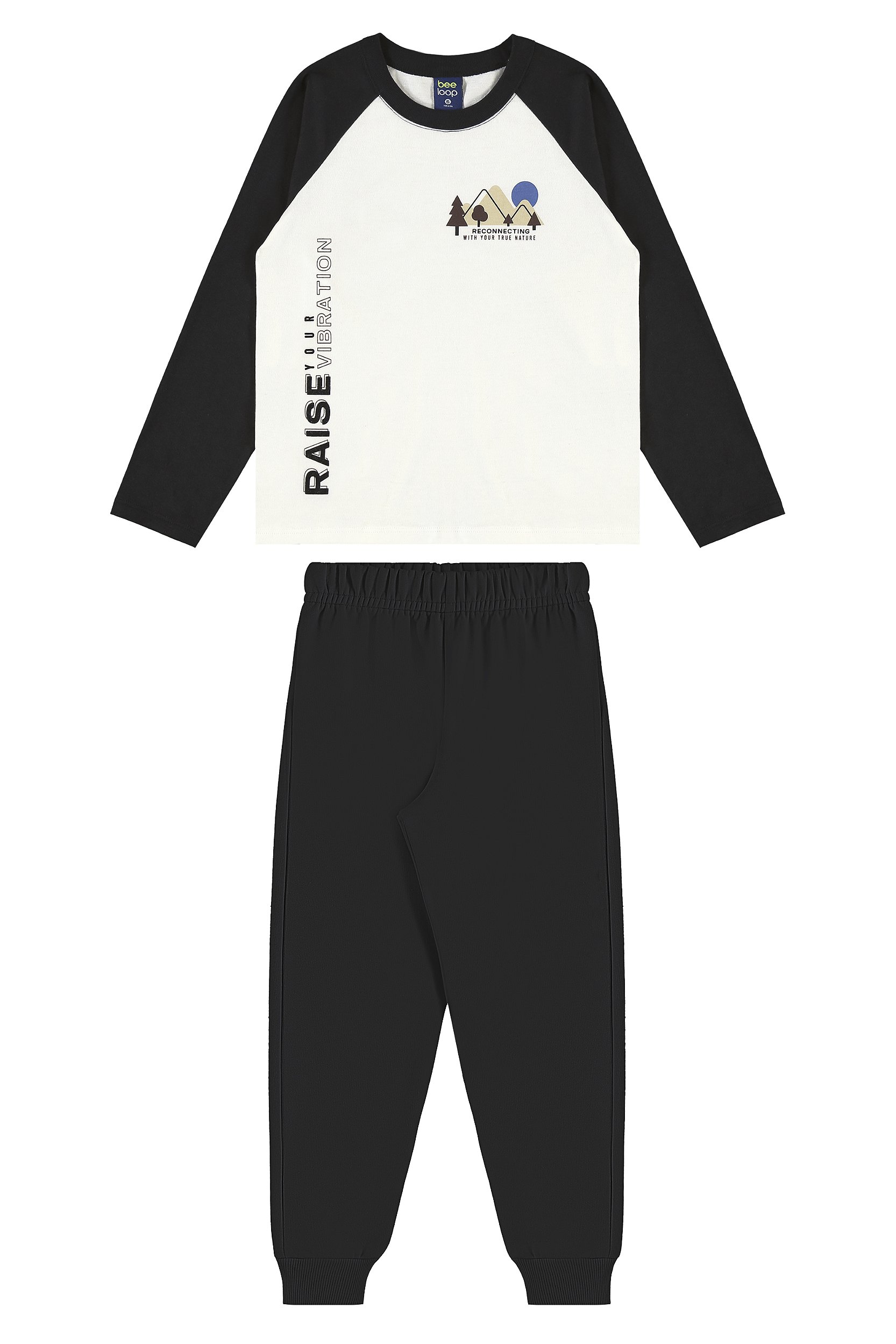 Conjunto camiseta malha e calça moletom sem felpa natural Bee Loop
