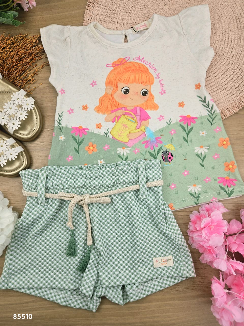 Conjunto de Bata em Malha Fresh e Shorts em Malha Vichy Textura Kukiê Bebê Menina