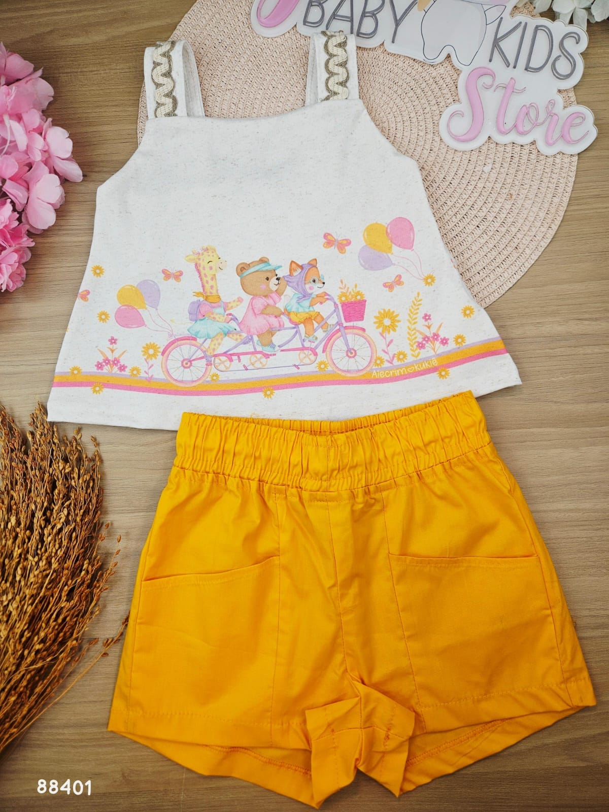 Conjunto de Bata em Malha Power e Shorts em Tricoline com Elastano Kukiê Infantil Menina