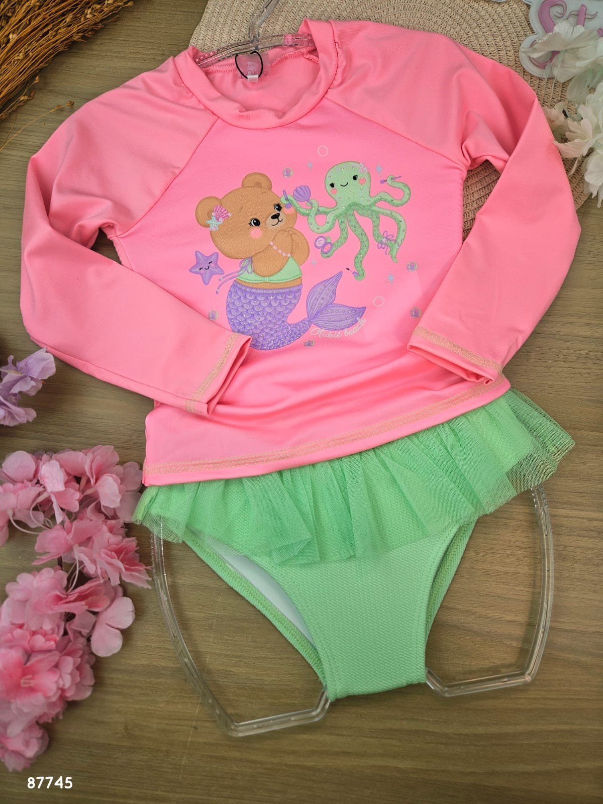 Conjunto de Blusa em Malha com Proteção UV50+ e Calcinha em Jaquard Textura Kukiê Bebê Menina