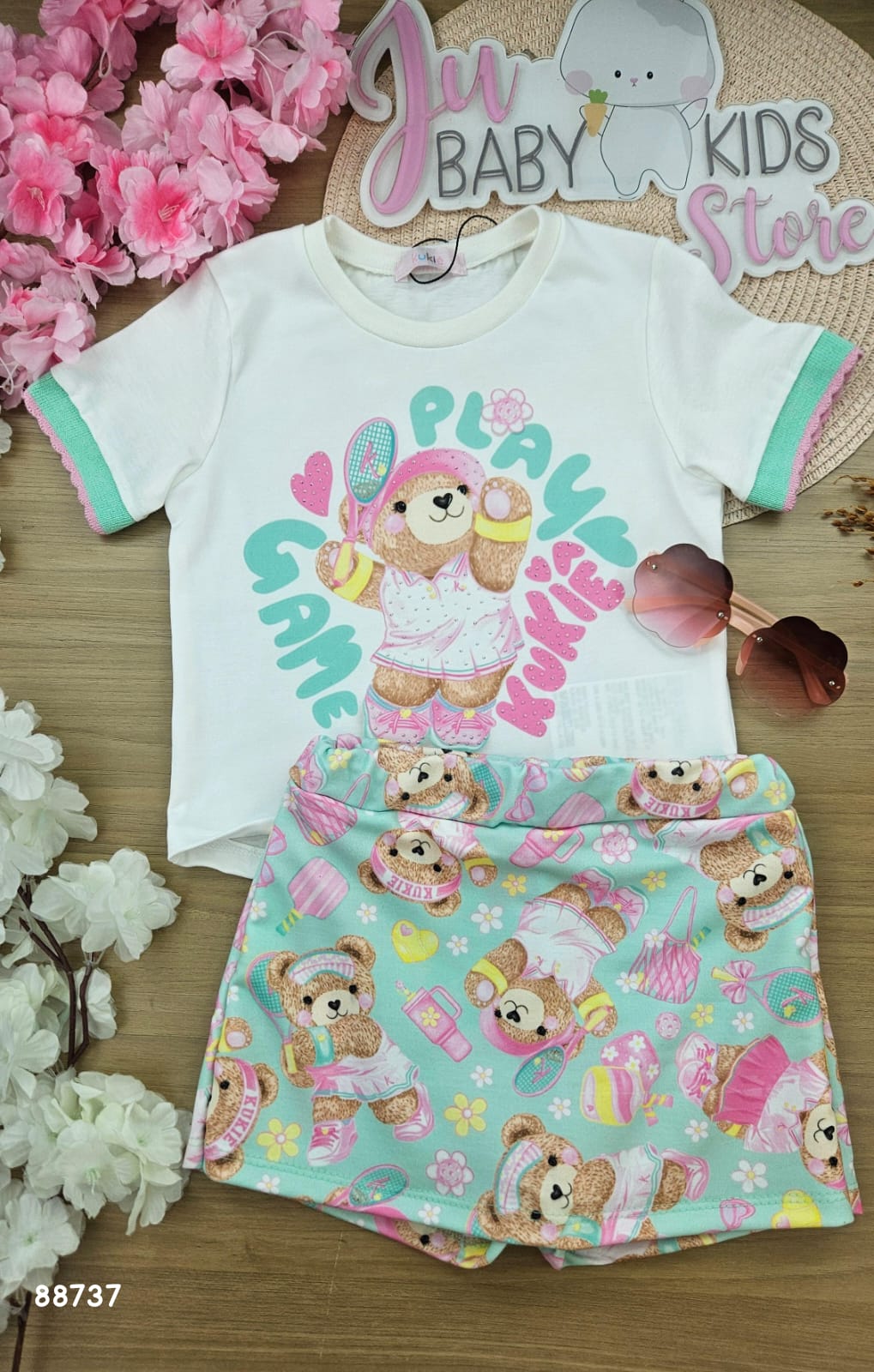 Conjunto de Blusa em Meia Malha e Short Saia em Molecotton Kukiê Infantil Menina