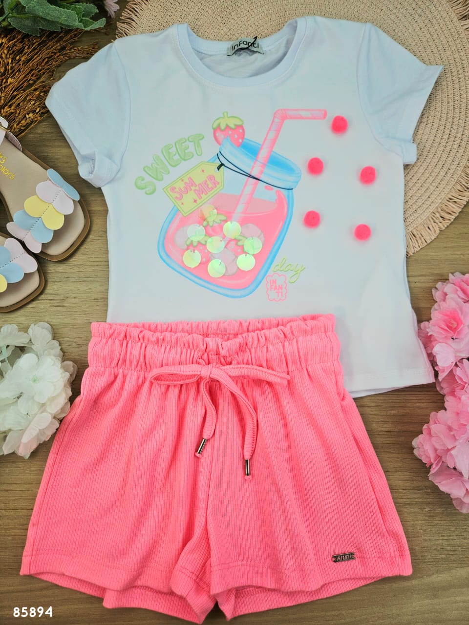 Conjunto de Blusa em Meia Malha e Shorts em Canelado Liz Infanti Infantil Menina