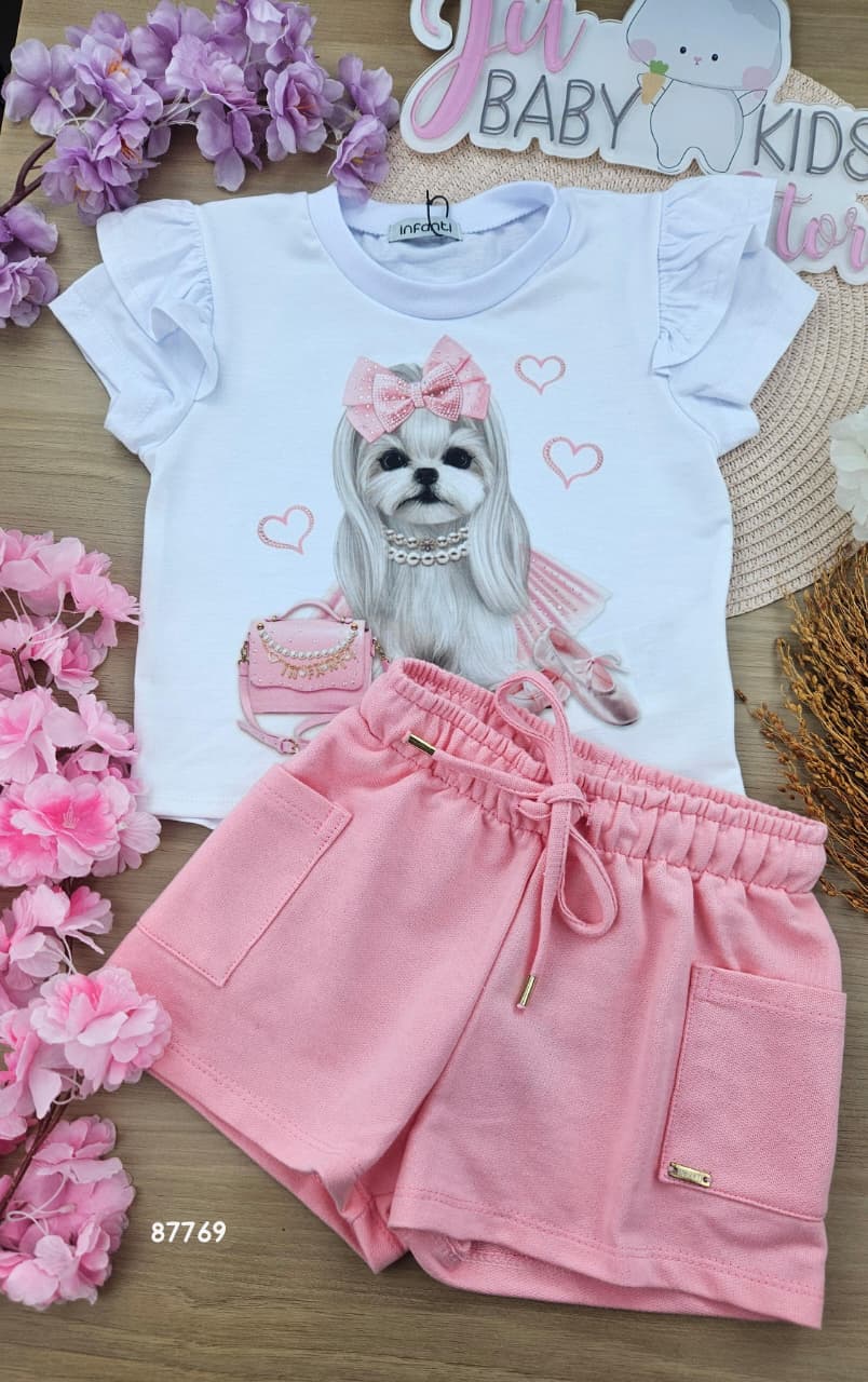 Conjunto de Blusa em Meia Malha e Shorts em Moletom sem Pelúcia Infanti Infantil Menina