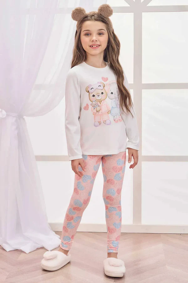 Conjunto de Pijama de Blusa e Calça Legging em Malha Comfy Infanti Infantil Menina