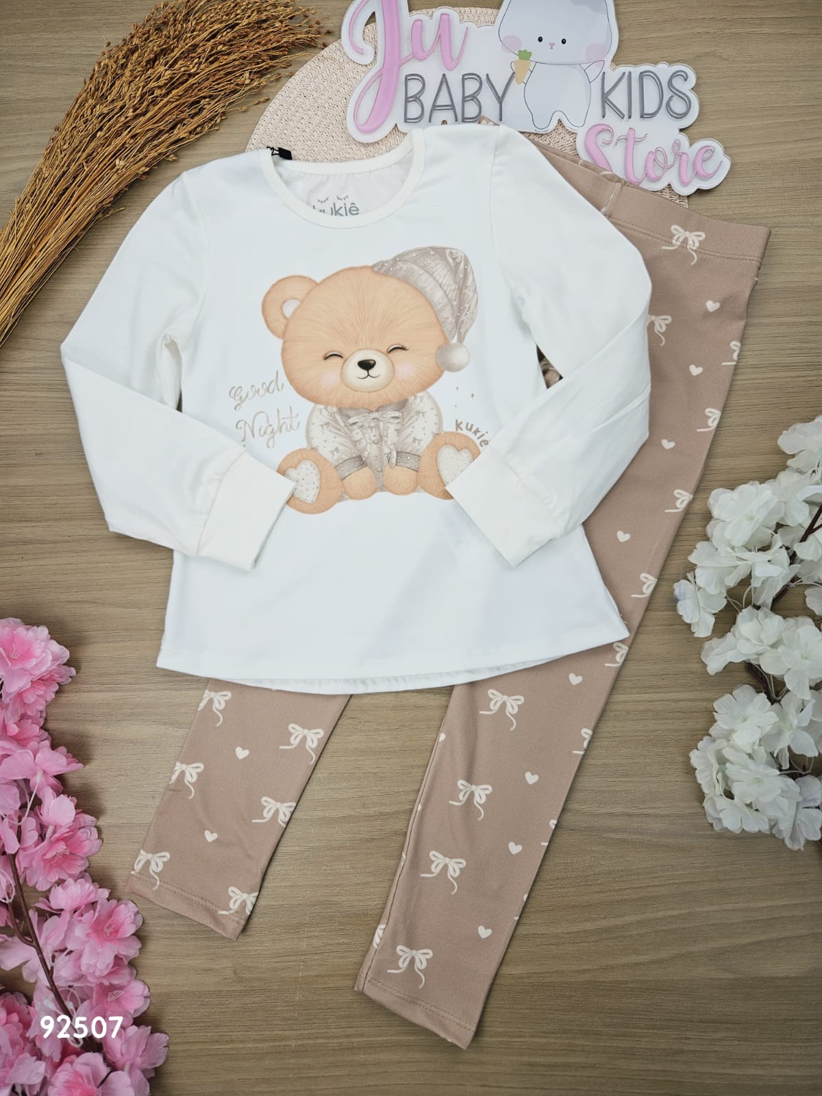 Conjunto de Pijama de Blusa em Meia Malha e Calça em Malha Comfort Kukiê