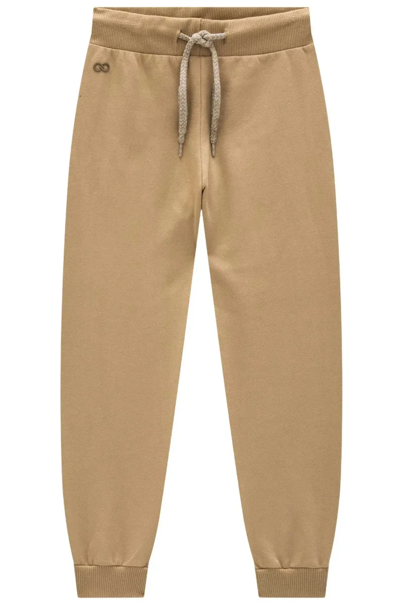 Calça Jogger em Moletom com Pelúcia Bege LucBoo Infantil Menino