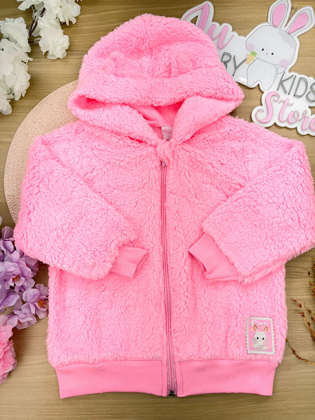 Jaqueta Bebê Menina Carneirinho com Orelhinhas Rosa Cinti