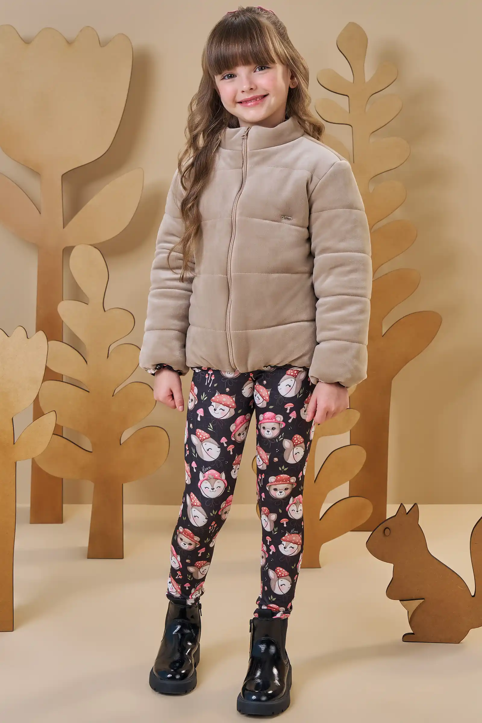 Jaqueta Puffer Reversível em Veludo com Elastano e Malha Comfy Infanti Infantil Menina