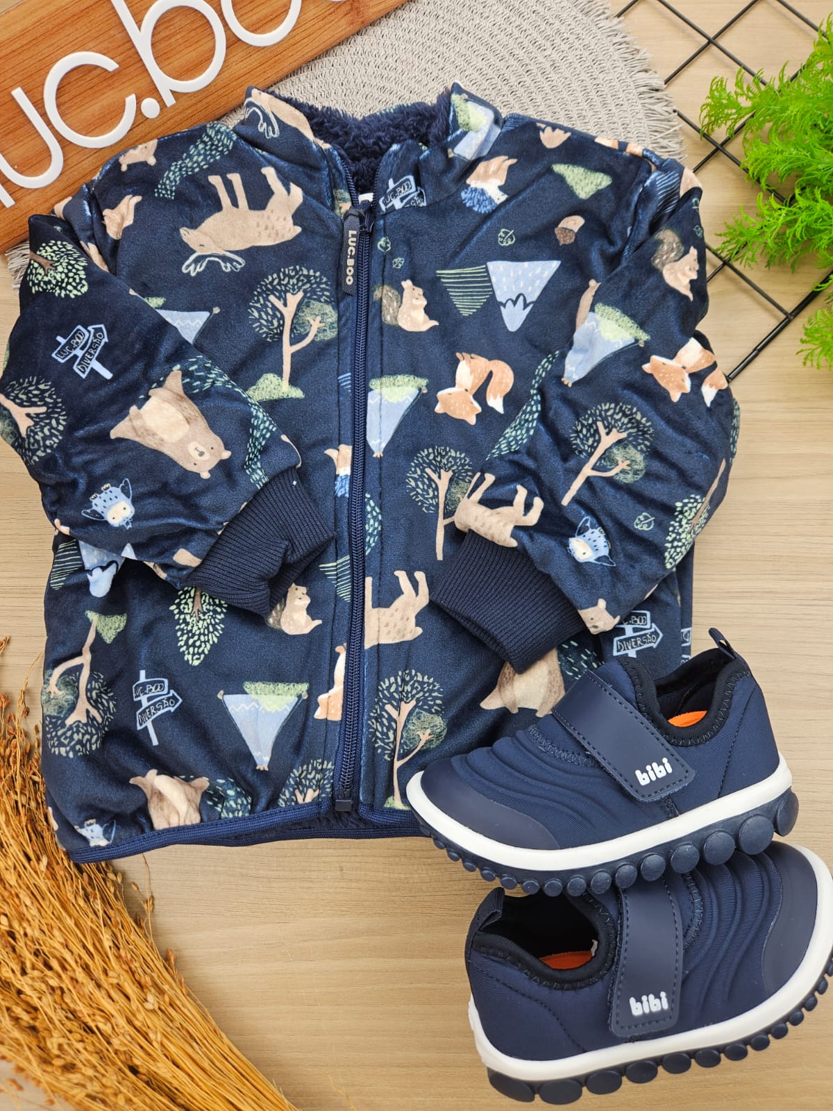 Jaqueta Reversível Em Fleece Luxo E Pelo Carneirinho Marinho Lucboo