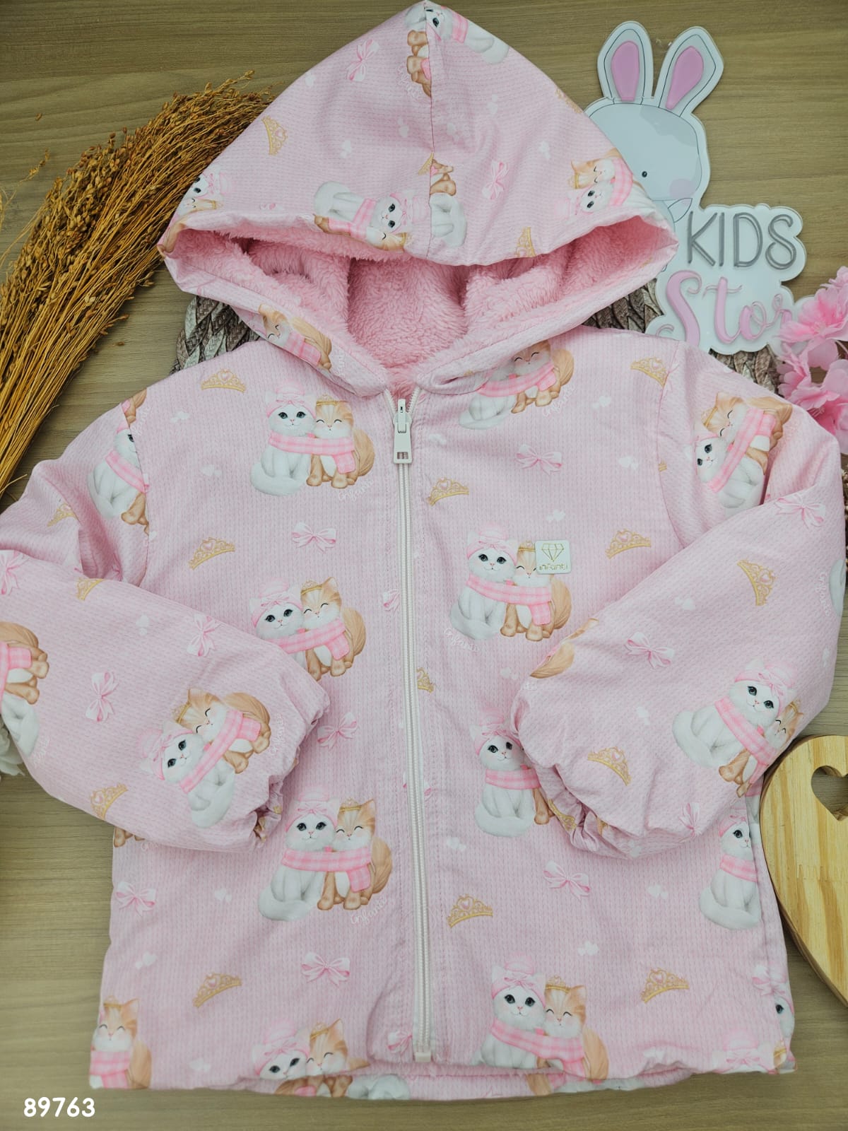Jaqueta Reversivel Em Nylon E Pelo Carneirinho Rosa Claro Infanti