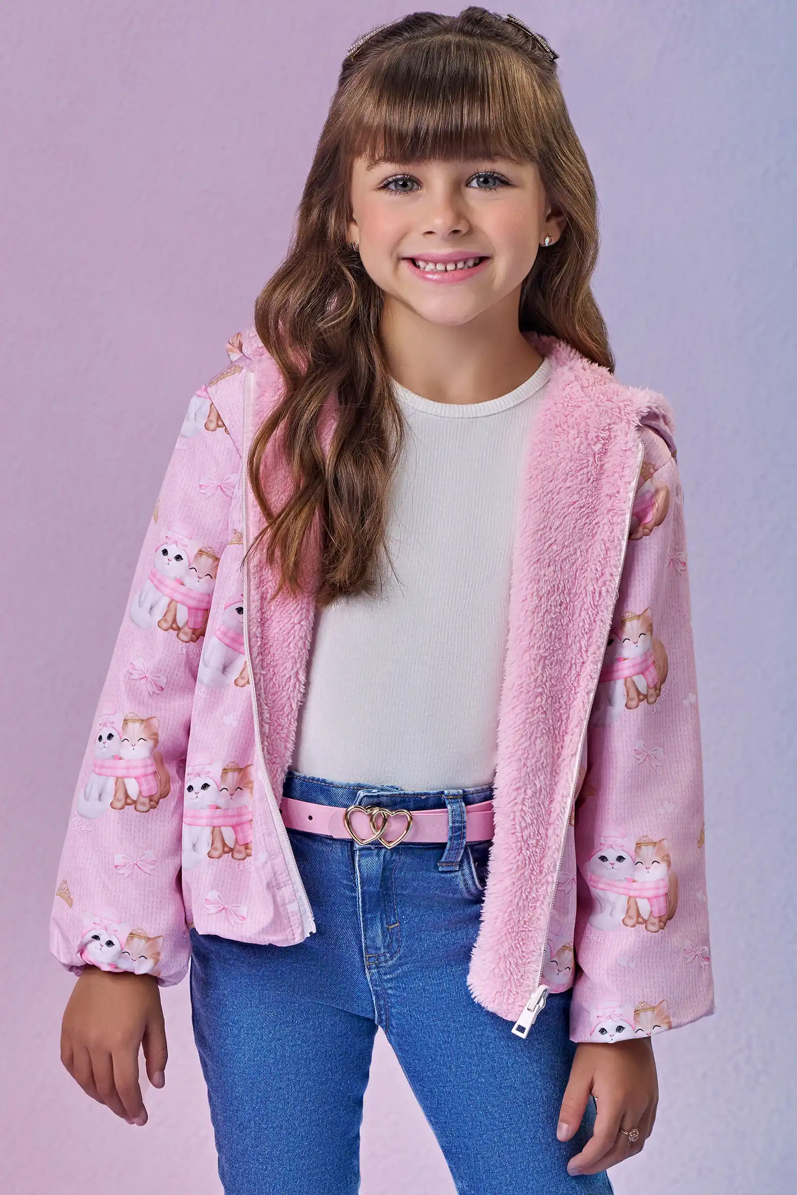 Jaqueta Reversível em Nylon e Pelo Carneirinho Infanti Infantil Menina