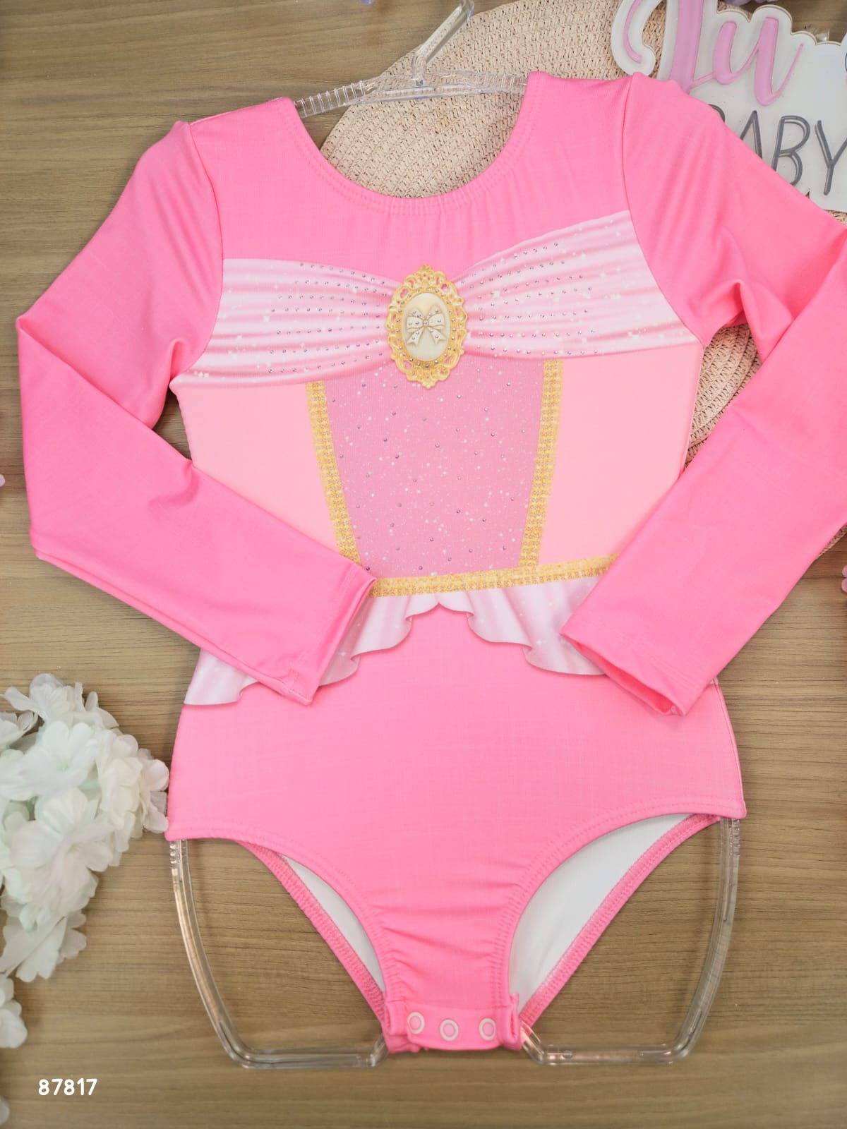 Maiô em Malha UV Dry com Proteção UV 50+ Bela Adormecida Aurora Infanti