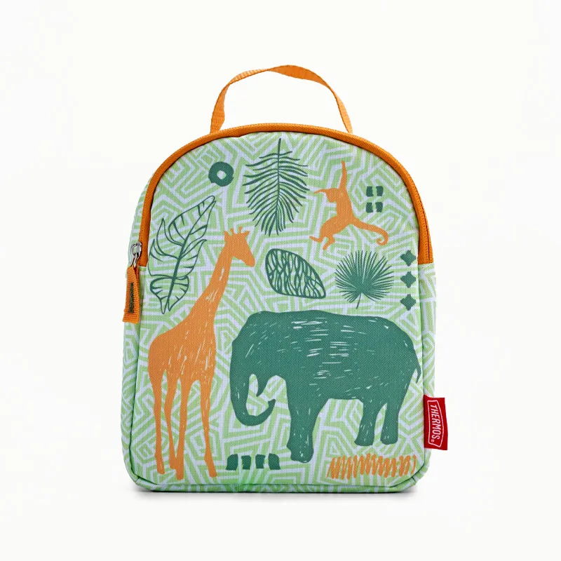 A Mini Lancheira Térmica Reino da Selva é produzida em material maleável, seu interior é com isolamento térmico de espuma celular de alta qualidade, nesse modelo, sem repartições. Todos os materiais são livres de PVC. Com estampa colorida e divertida a Mini Lancheira Térmica Thermos vai ser o maior companheiro do seu filho na hora do lanche, seja para levar para a escola ou acompanhar em uma viagem.