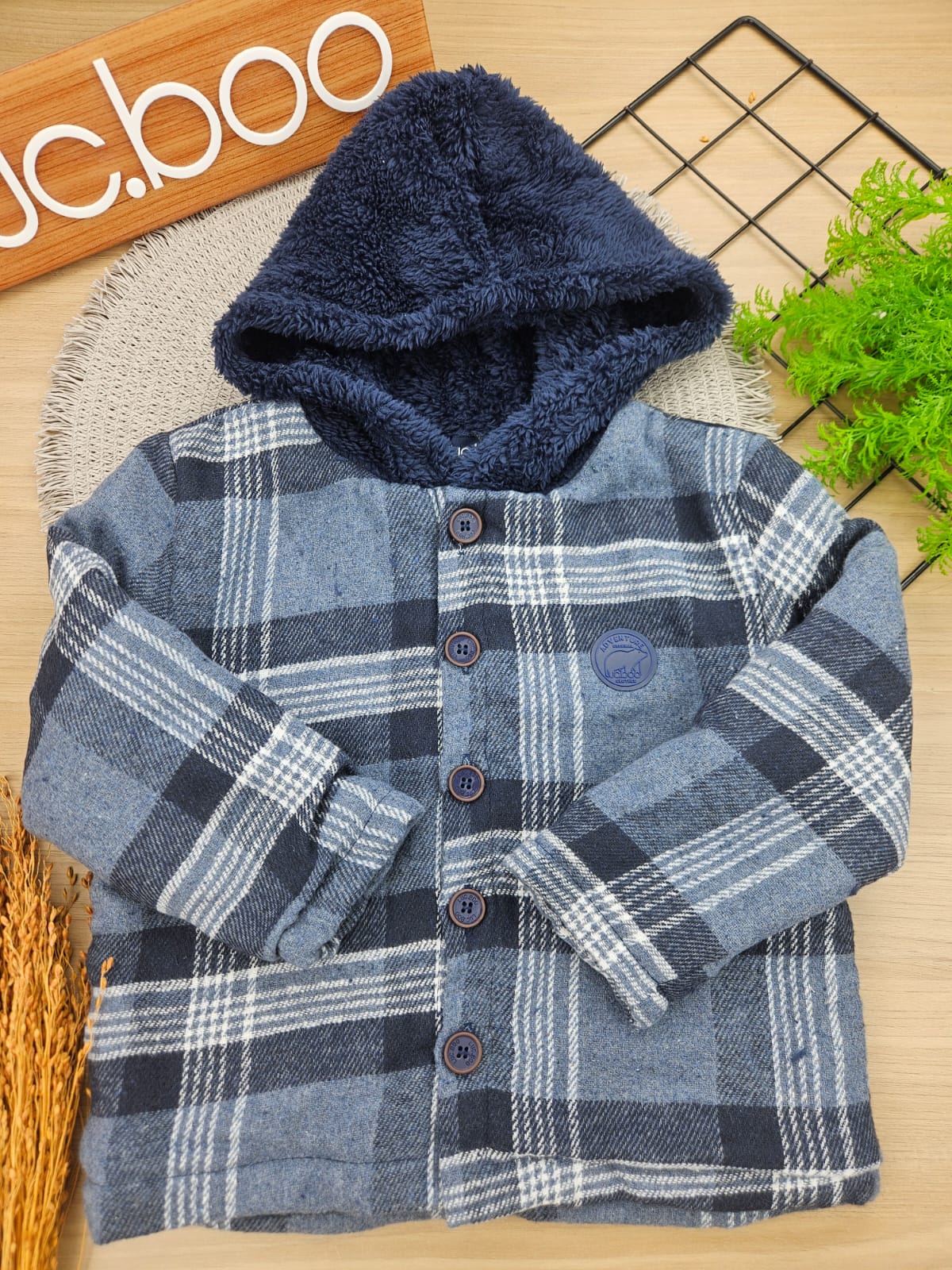 Overshirt Em Flanela Xadrez E Pelo Carneirinho Marinho Lucboo