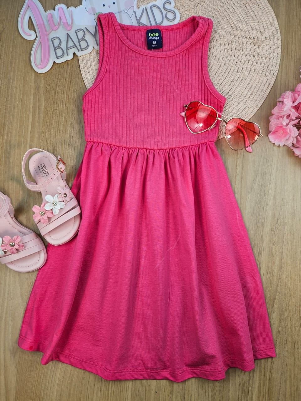 VESTIDO REGATA EM MEIA MALHA E RIBANA CANELADA Rosa Bee Loop