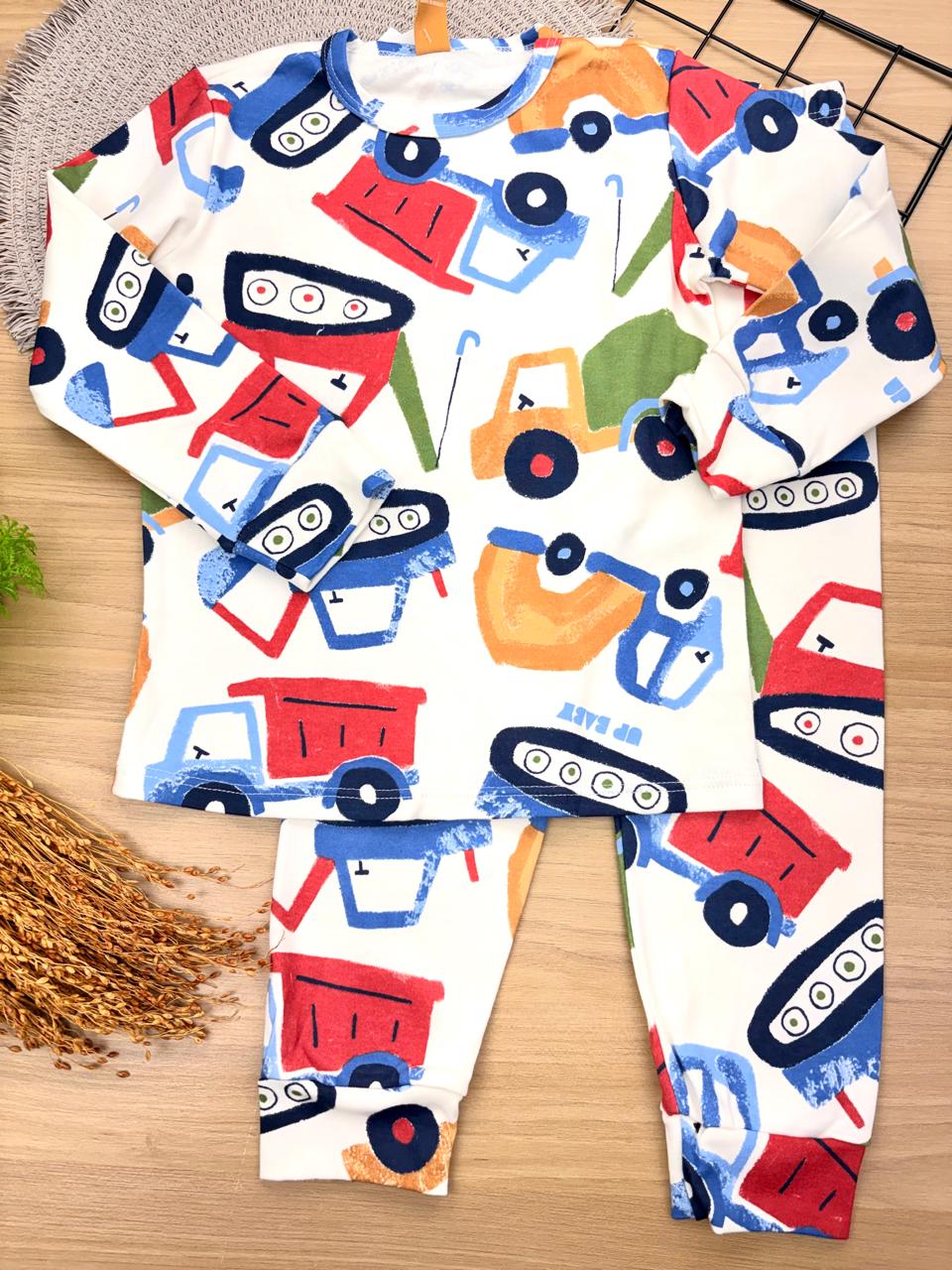 Pijama Blusa e Calça em Suedine Tratorzinho Up Baby