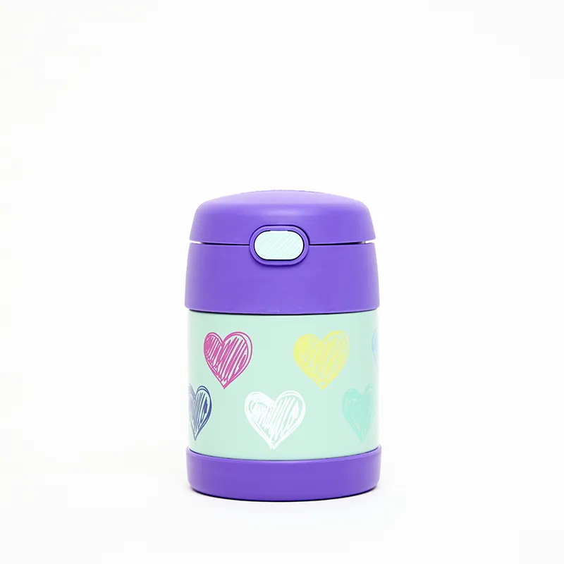 O Pote Térmico Infantil Thermos Funtainer F310 Corações Coloridos - 290 ml de capacidade, combina beleza e funcionalidade para o dia a dia das crianças. Desenvolvido para pais que buscam praticidade e segurança, ele mantém a temperatura ideal de alimentos quentes por até 5 horas e frios por até 7 horas, tornando-se um item indispensável para garantir lanches e refeições frescas e saborosas a qualquer hora. Com a exclusiva tecnologia de isolamento a vácuo Thermos, este pote é feito em aço inoxidável com parede dupla, o que garante resistência a quedas, segurança ao toque e durabilidade. A parte externa não esquenta ao toque quando há alimentos quentes e não transpira com alimentos frios, proporcionando conforto e segurança para as crianças.