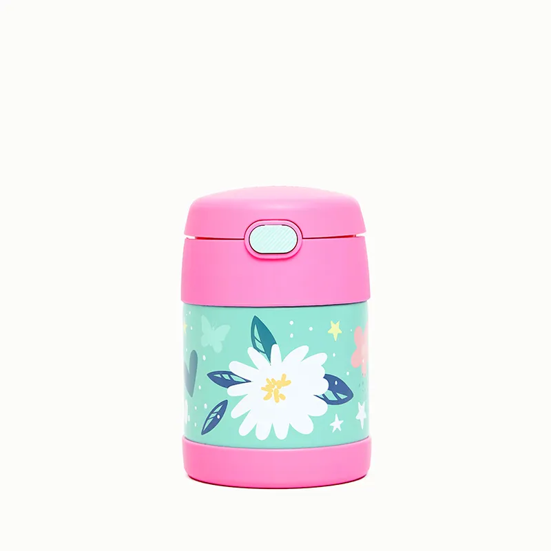 O Pote Térmico Infantil Thermos Funtainer F310 Jardim das Flores - 290 ml de capacidade, combina beleza e funcionalidade para o dia a dia das crianças. Desenvolvido para pais que buscam praticidade e segurança, ele mantém a temperatura ideal de alimentos quentes por até 5 horas e frios por até 7 horas, tornando-se um item indispensável para garantir lanches e refeições frescas e saborosas a qualquer hora. Com a exclusiva tecnologia de isolamento a vácuo Thermos, este pote é feito em aço inoxidável com parede dupla, o que garante resistência a quedas, segurança ao toque e durabilidade. A parte externa não esquenta ao toque quando há alimentos quentes e não transpira com alimentos frios, proporcionando conforto e segurança para as crianças.