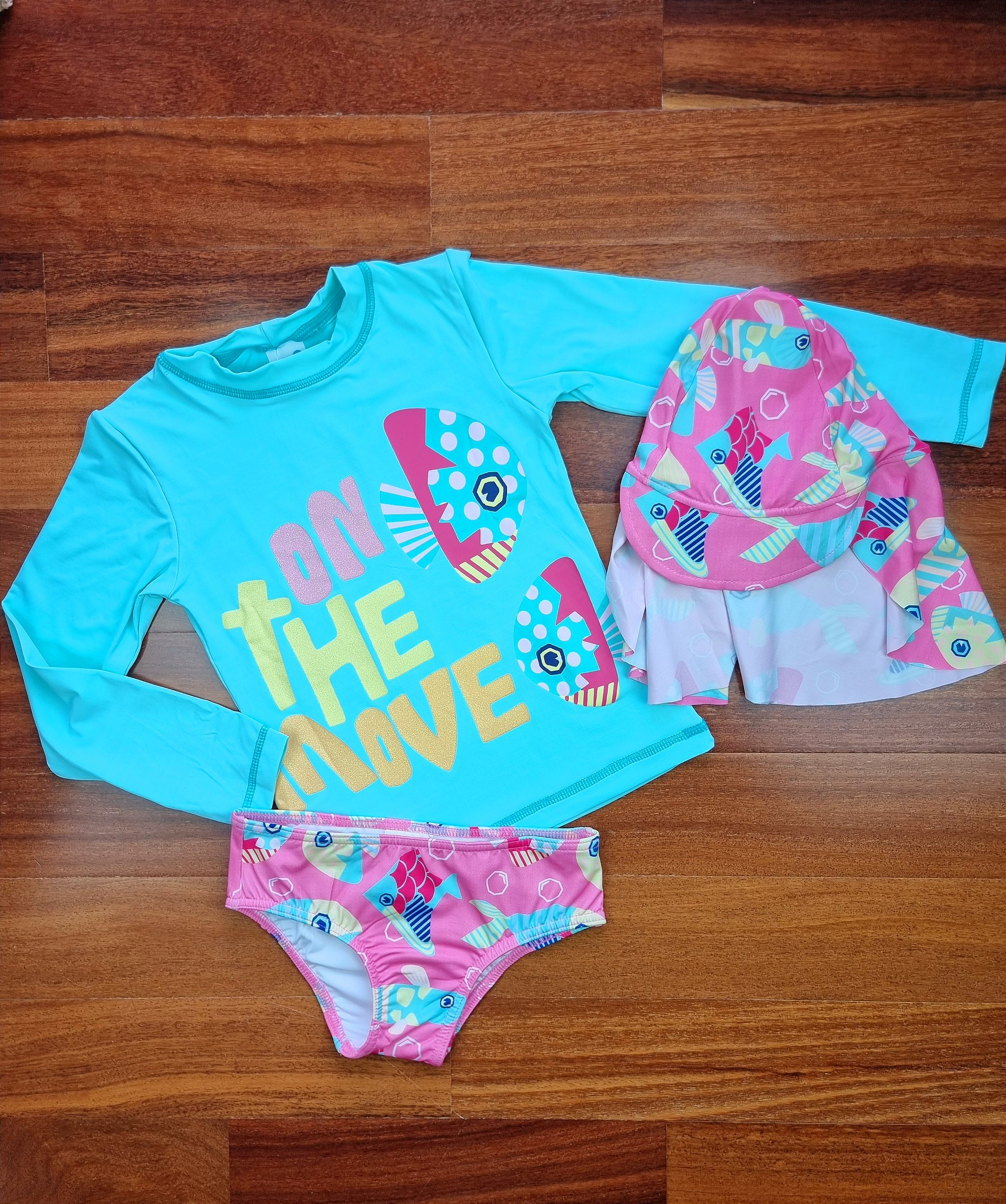 O Trio Praia Peixes Rosa Elastano Kids Proteção UV 50+ é um kit super versátil e estiloso, sendo ideal para esse verão!