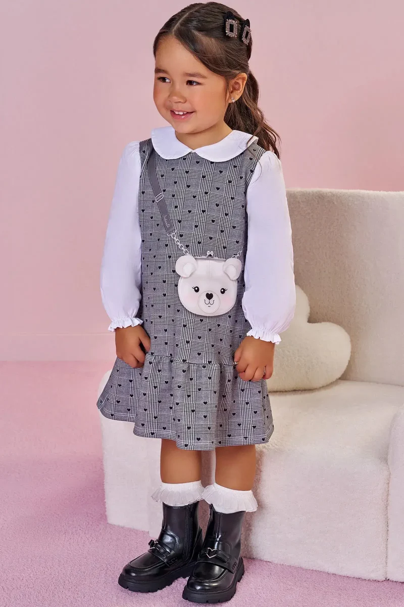 Vestido em Fly Tech e Tricoline Infanti Bebê Menina