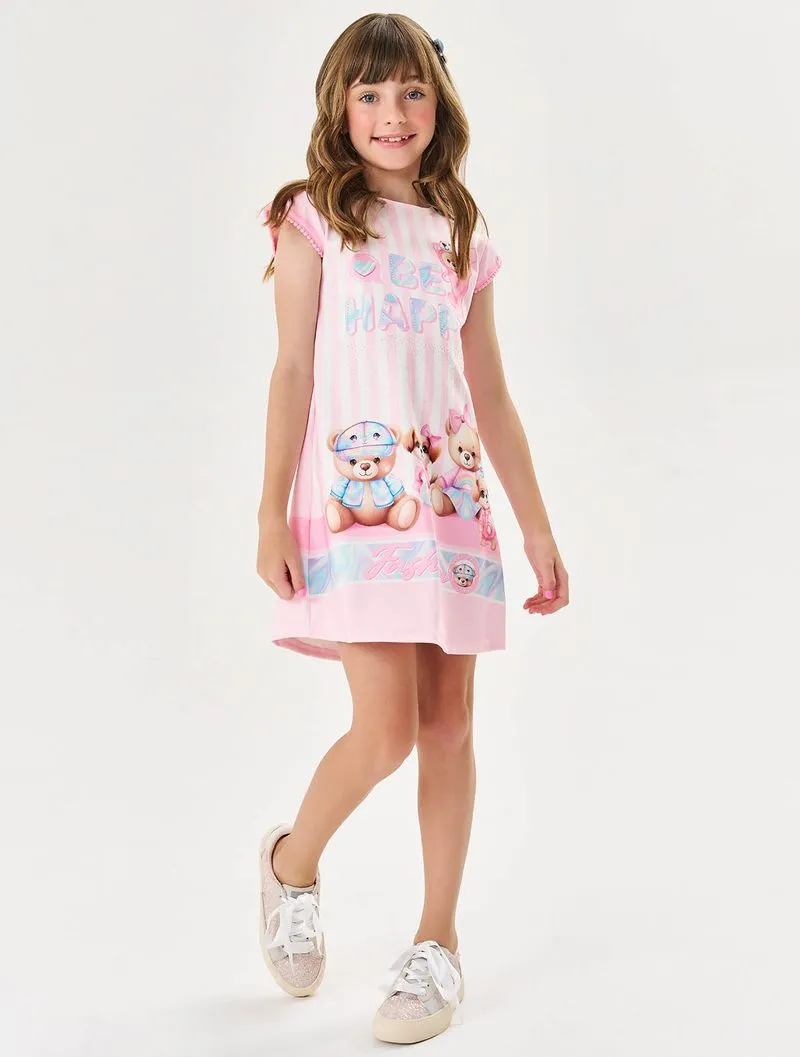 Vestido Infantil Menina Be Happy Rosa Cinti