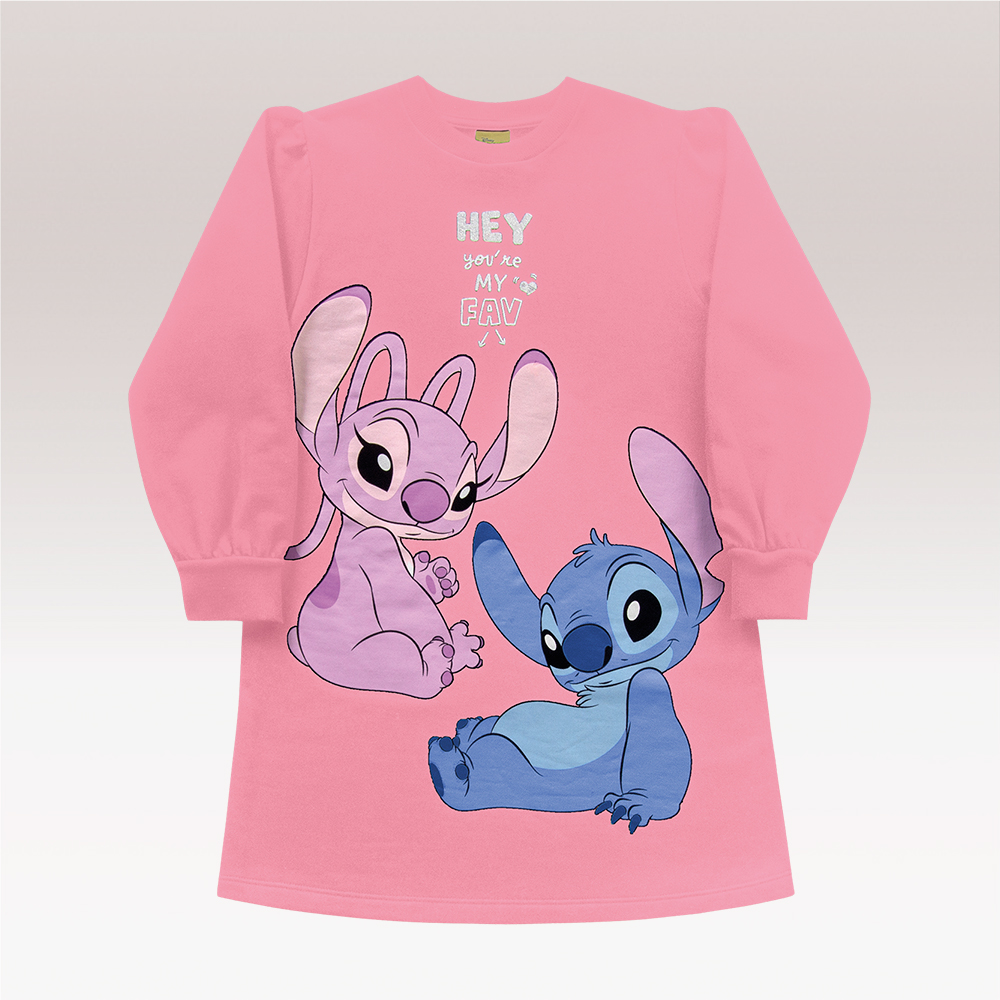 Vestido Manga Longa Rosa Stitch Fakini