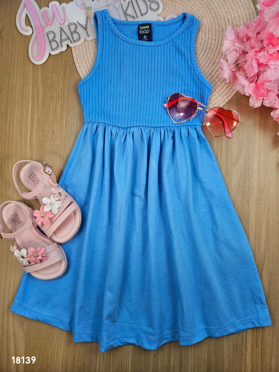 VESTIDO REGATA EM MEIA MALHA E RIBANA CANELADA Azul Bee Loop